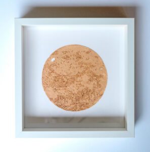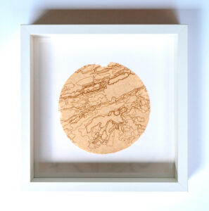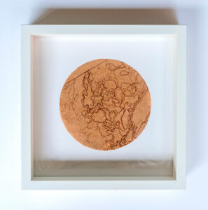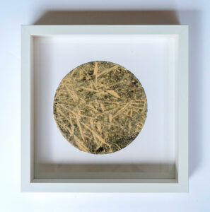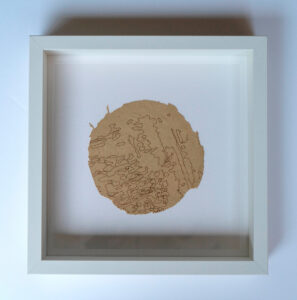 Derivaciones materiales [2024] is a piece made out of samples of different material tests results. As a main result of the Phd research ‘Graphic Ecosistems’ paper samples developed from the selected Invasive Alien Species where tested in order to clarify its printability (viability for being printed on) and heat resistance. Three main techniques were applied: Photoengraving, xylography print and laser engraving.