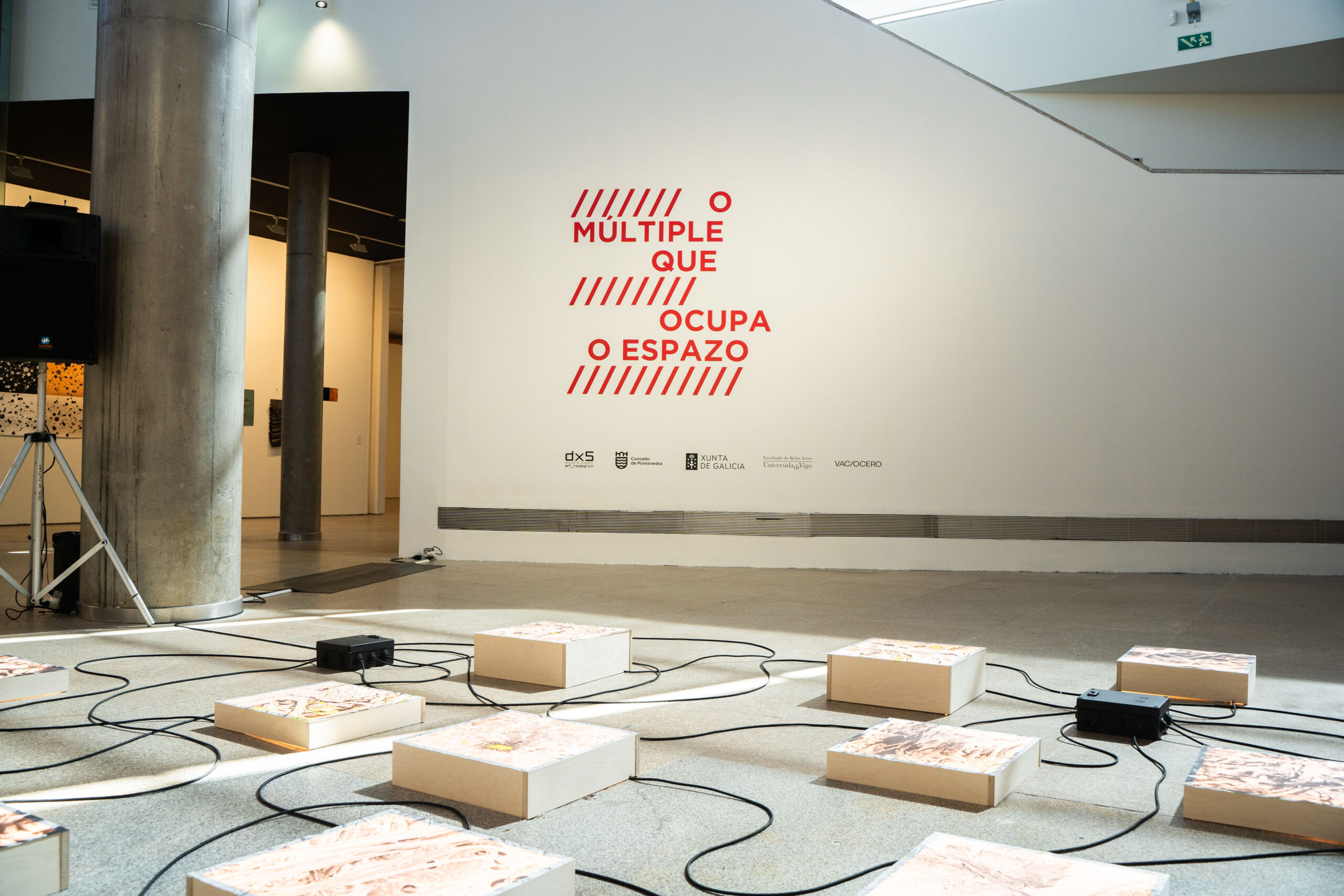 The multiple that occupies the space is a large and ambitious project that was developed in Galicia between May 8 and June 30, 2024. Counting with the presence of national and international artists, the group dx5 digital and graphic art research proposed a multi-site activity that would occupy not only the halls and walls of the city of Pontevedra, Galicia, but also public spaces. Closing one of the main lines of research of the team, the Múltiple consisted of 4 simultaneous exhibitions (Simbiosis in O Pazo da Cultura; Resonancias in the Sala Fundación RAC; Xerminal in the Sala Universitaria Profesor Manuel Moldes and Interferencias in the public spaces of Pontevedra), as well as a series of Conferences developed between May 8-10 in A Casa das Campás, Pontevedra. The main objective of the project, co-commissioned with Vaciocero, Concello de Pontevedra, Universidade de Vigo and the members of the dx5 group, was to dynamize and bring multiple and expanded contemporary art closer to the public.